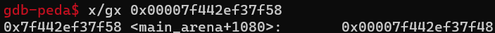 chunk1์ ํด์ ๊ฐ ์ด๋ค์ง๋ฉด unsorted bin์ผ๋ก chunk๊ฐ ๋ค์ด๊ฐ๋ค. ์ด๋, ํด์ ๋ ์ฒญํฌ๋ ์ด์ค ์ฐ๊ฒฐ๋ฆฌ์คํธ๋ก ๊ด๋ฆฌ๊ฐ ๋๋ค. fd์ bk๋ฅผ ๋ณด๋ฉด ์ฃผ์ ๊ฐ์ด ๋ค์ด๊ฐ ์๋ค. ์ด ๊ฐ์ ํ์ธํด๋ณด๋ฉด main_arena+88 ์์น์ ์ฃผ์์ธ ๊ฒ์ ์ ์ ์๋ค. ๋ง์ฝ ์ด ์ฃผ์๋ฅผ leak ํ ์ ์๋ค๋ฉด, ์ด๋ฅผ ํตํด libc base๋ฅผ ๊ตฌํ ์ ์๋ค.