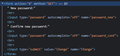 <form action="http://127.0.0.1/vulnerabilities/csrf/?" method="GET" name="low">