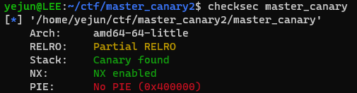 마스터 카나리는 스택에 있지 않아서 BOF가 발생해도 exploit이 불가능하지만, 쓰레드 스택의 경우는 예외적으로 쓰레드 스택에 마스터 카나리가 들어간다.