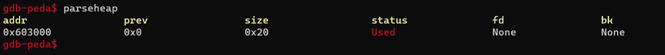 malloc(0x30)을 호출하면 반환 주소가 앞서 fastbin에 넣어두었던 주소(0x7fffffffe2d8)임을 확인할 수 있다.