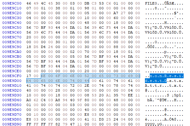 자신의 환경에서 Non Resident 속성을 가진 $DATA 속성을 만들고 다음을 확인하세요.