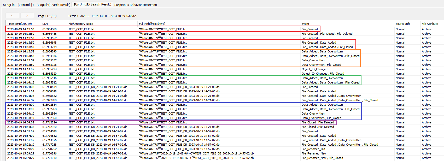 해당 파일을 생성, 수정, 삭제하고 NTFS Tracker로 분석해봤다.